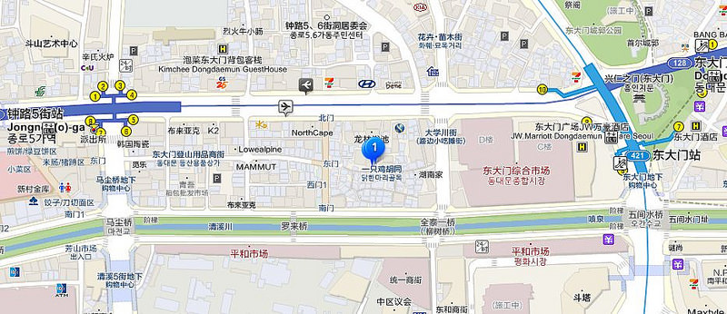 如果搭地鐵可以在鐘路5街站或東大門站下。