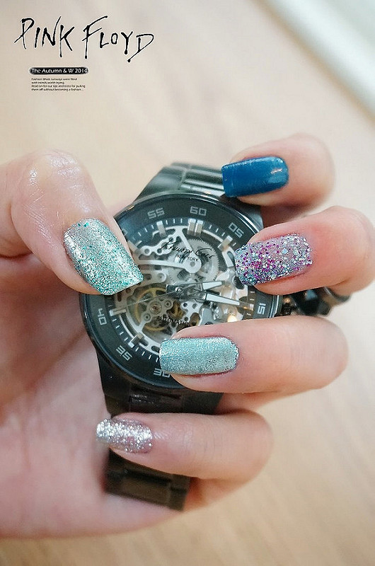 小拇指用毛怪簡單帶過囉!淺色搭亮片好看