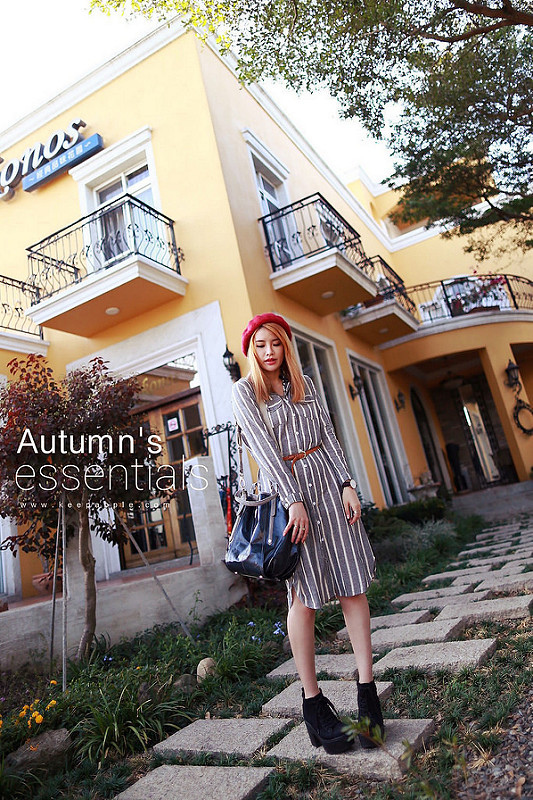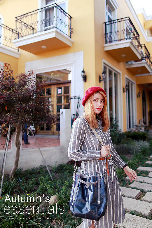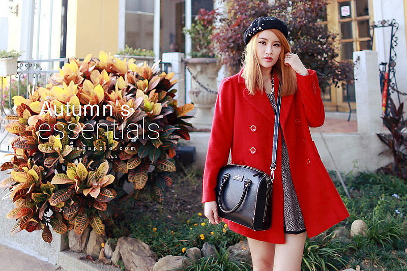 這種大衣裏面隨意搭個毛呢洋裝就OK,很有季節感