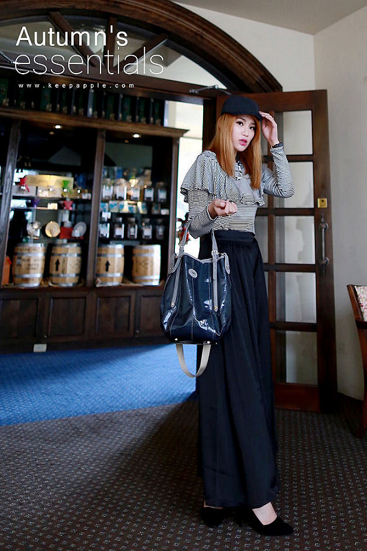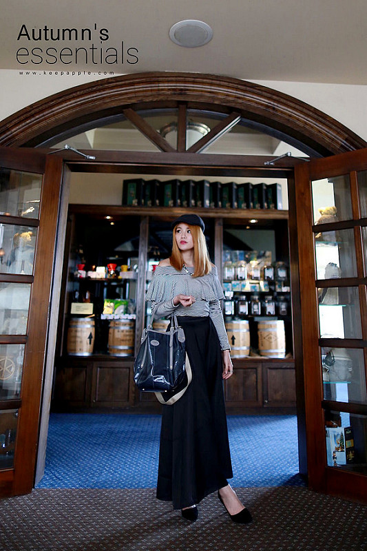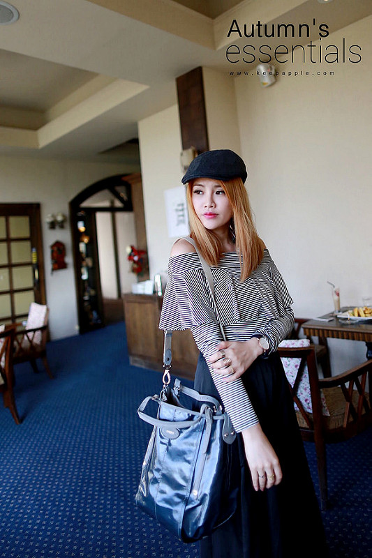 第一次嘗試這樣一字領MIX寬褲的搭配