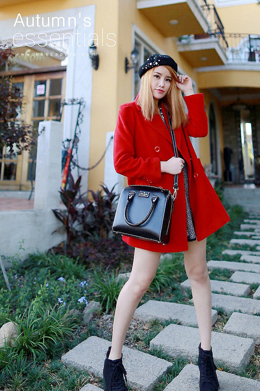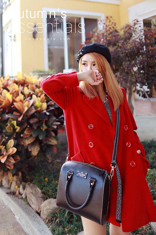 自己覺得紅色大衣跟黑色包包簡直絕配