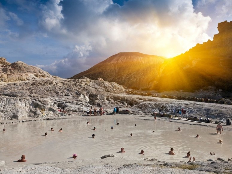 以能同時泡泥巴浴和欣賞火山口而聞名。