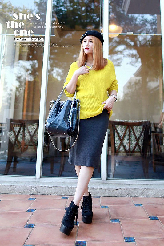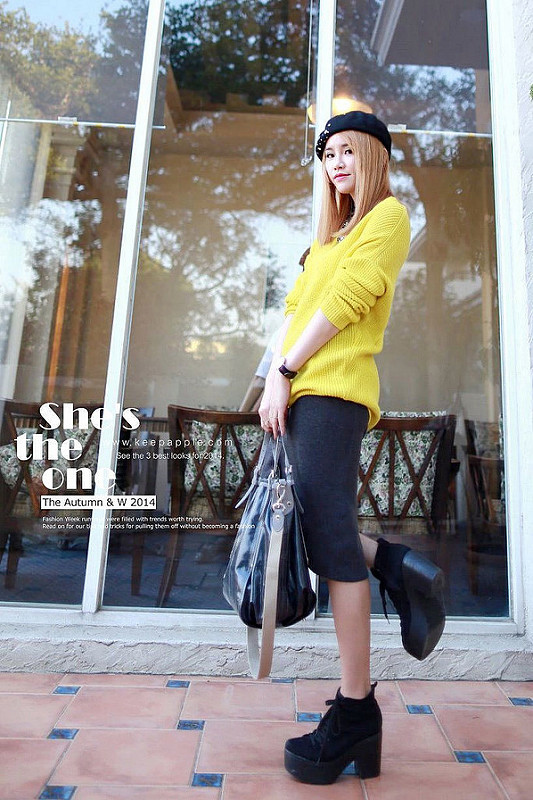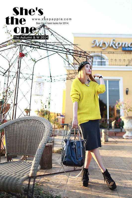 上衣的黃色針織衫是去年在韓國買的戰利品
