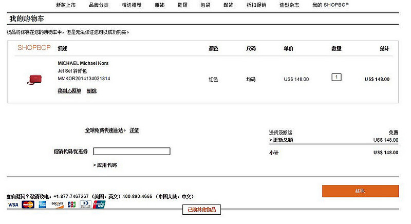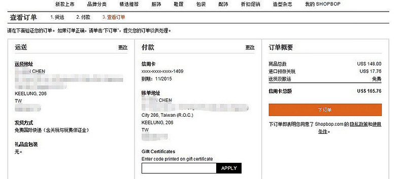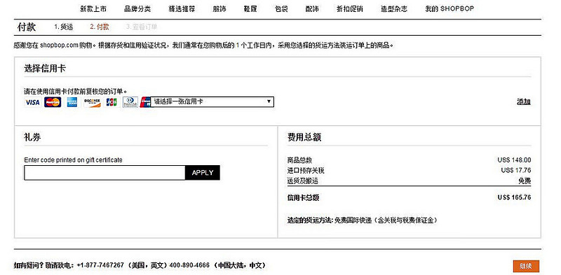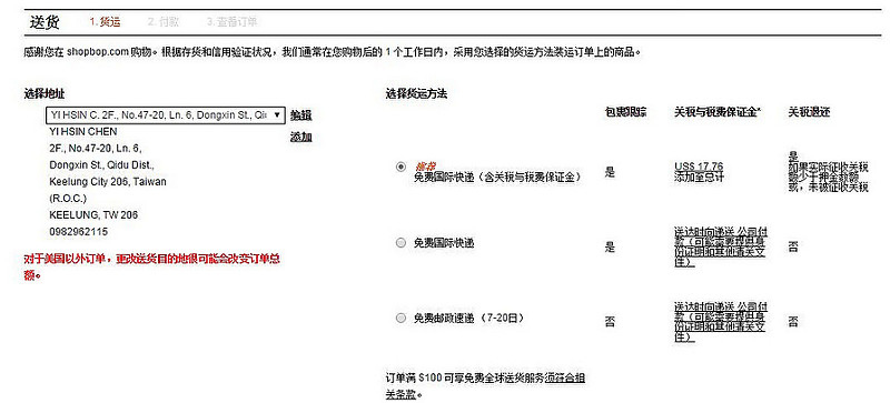 包括SHOPBOP Global、國際快遞和國際郵政投遞(USPS)3種