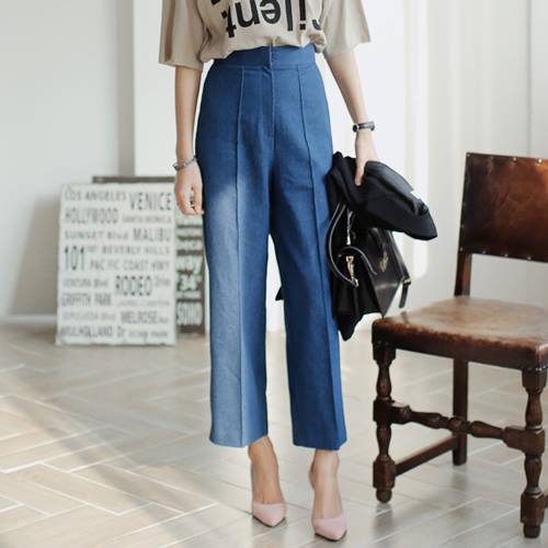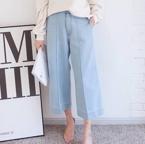 牛仔材質的寬褲