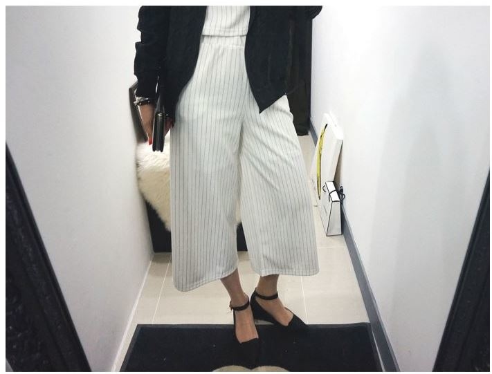自己是比較喜歡寬褲LOOK配上跟鞋啦