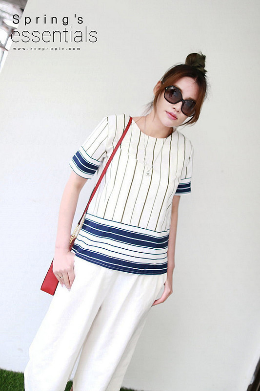 拼色條紋上衣:LemonDrop