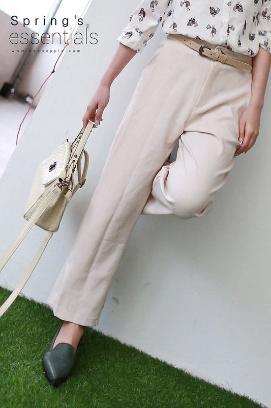 米色裸膚色長褲則是多了點都會感