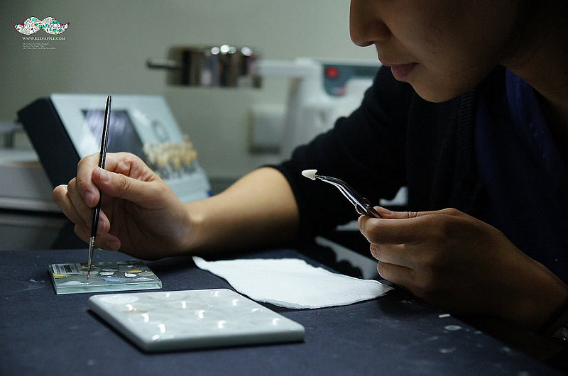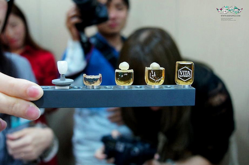經過處理後顏色就會完全地融合上去~這樣假牙就完成囉!!!幾可亂真啊!!!