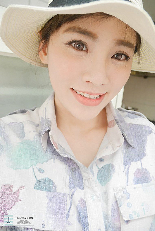 嫩綠色的襯衫很韓妞