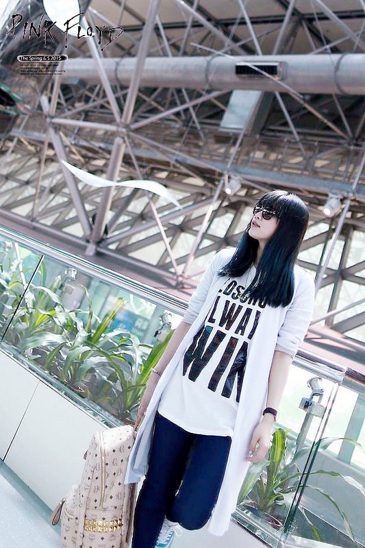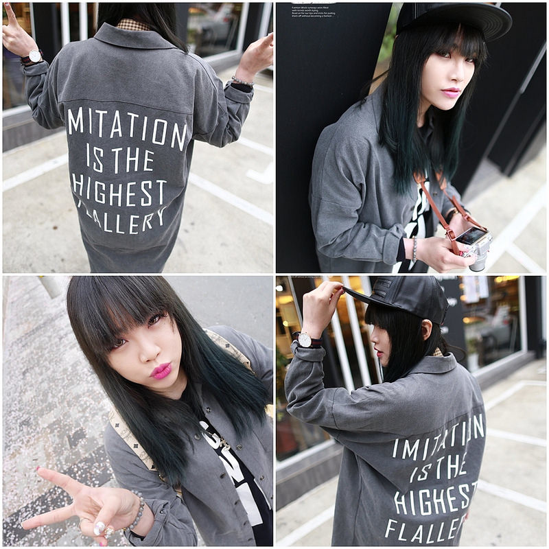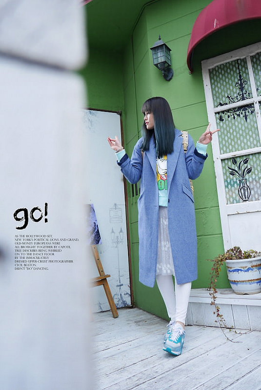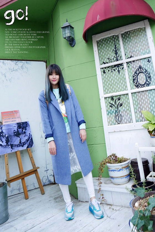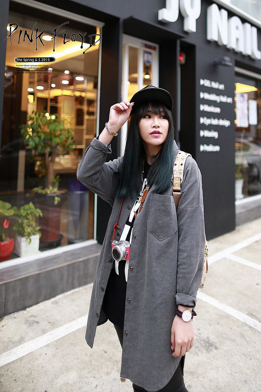 身上的單品包括長版外套跟灰色襯衫全部都是釜山戰利品喔!
