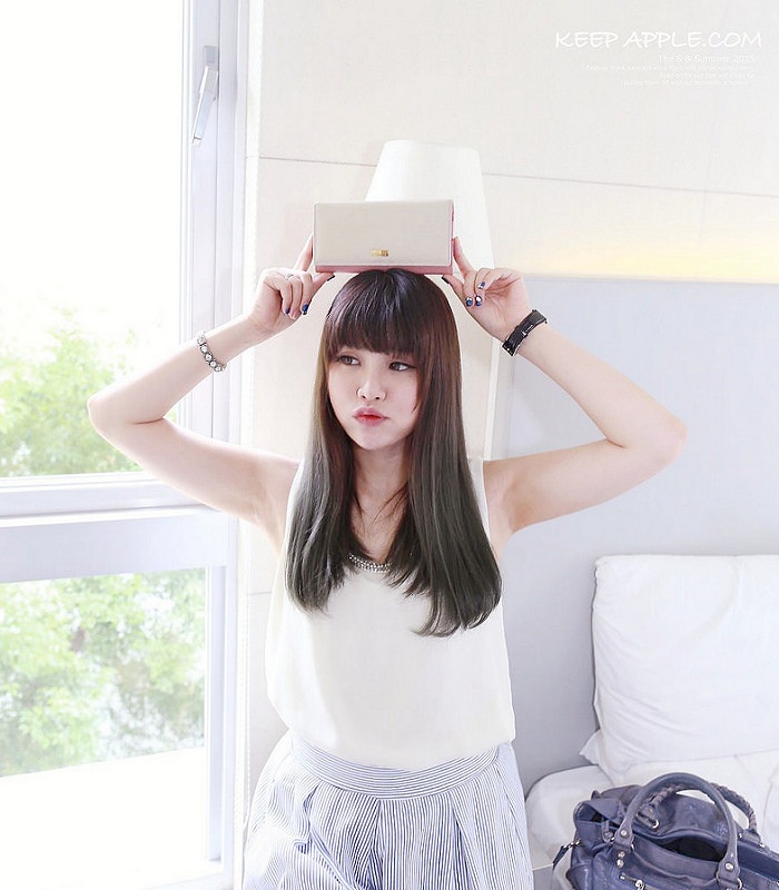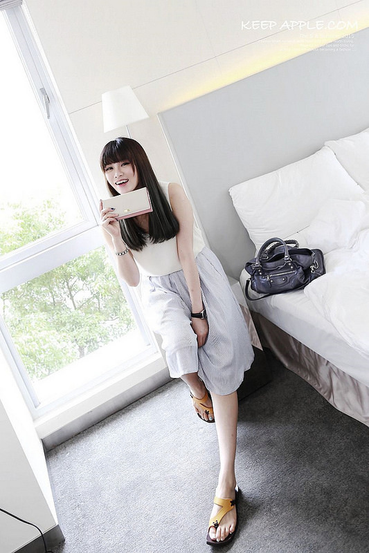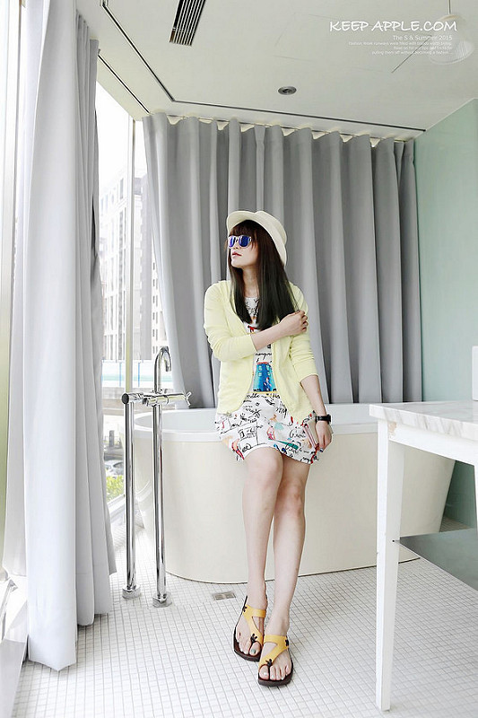 套上一拍,發現皮革綁帶處呼應鵝黃色,活潑度up up!