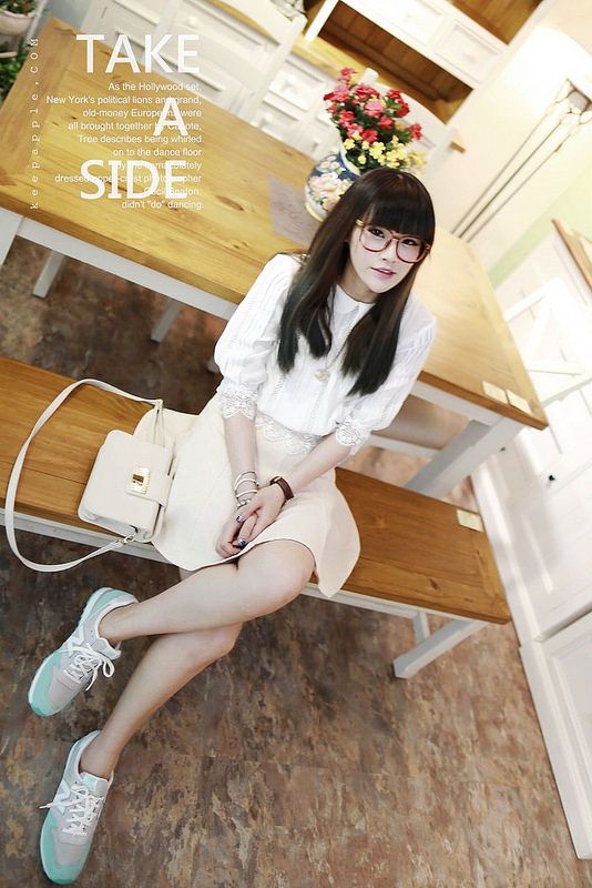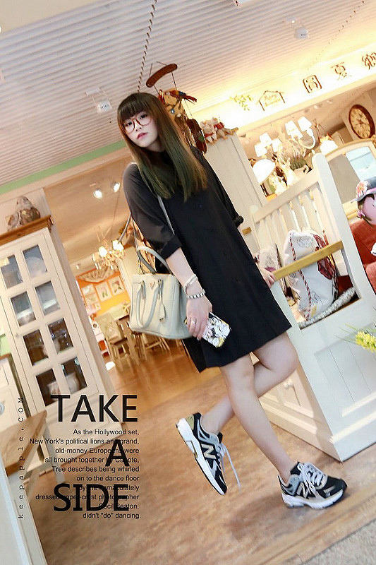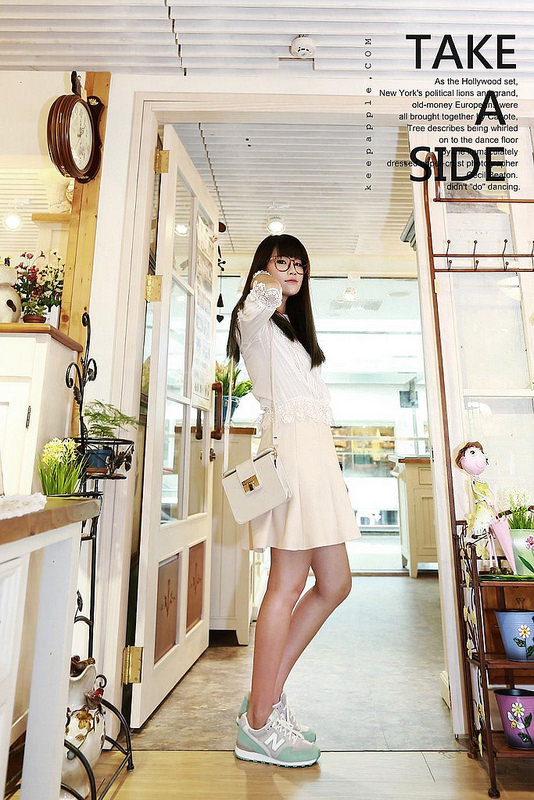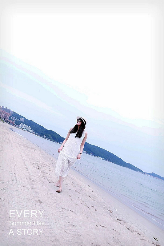 這樣看起來很像穿了連身裙加上飄逸的白色長版罩衫