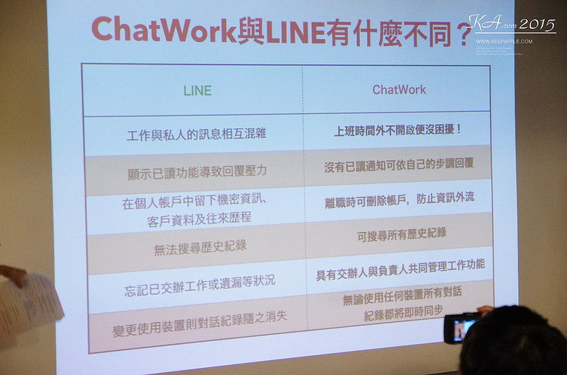 這張圖比較了一下LINE跟ChatWork的不同之處
