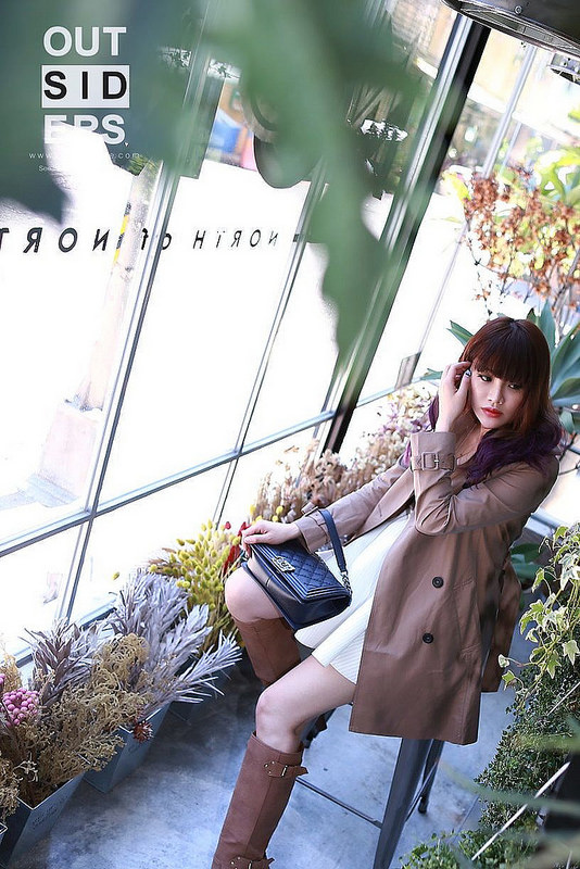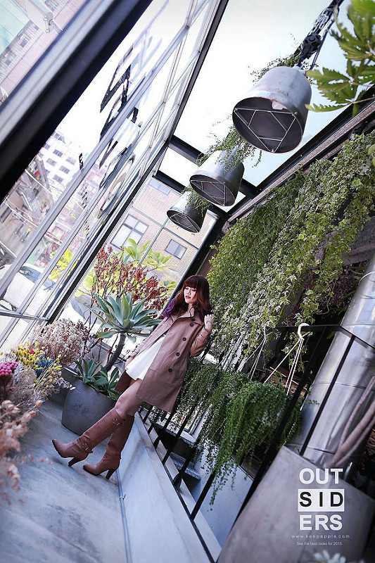 第二套:風衣外套扣起來當洋裝 X 軍靴