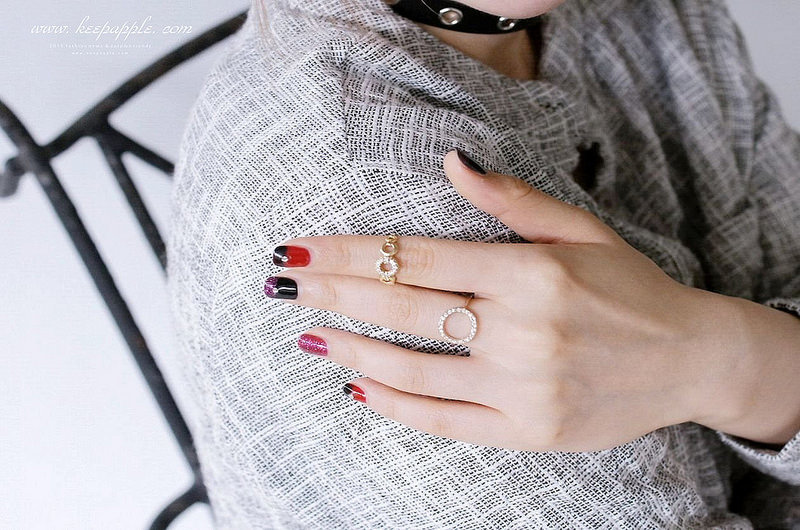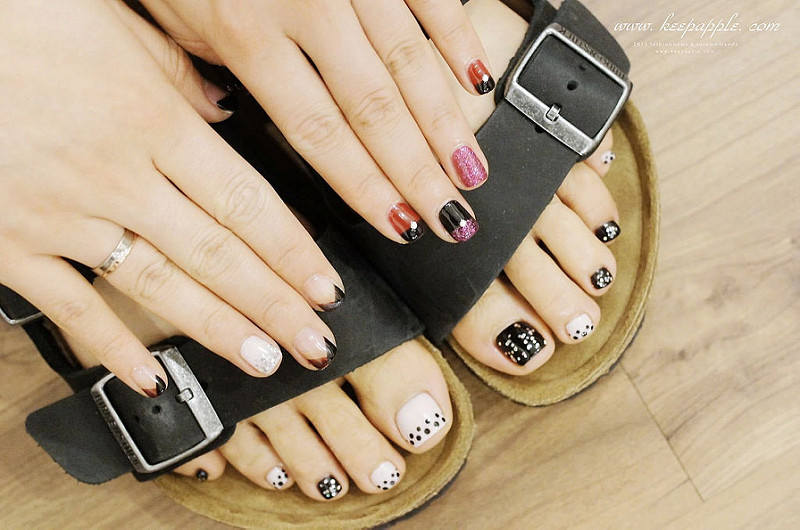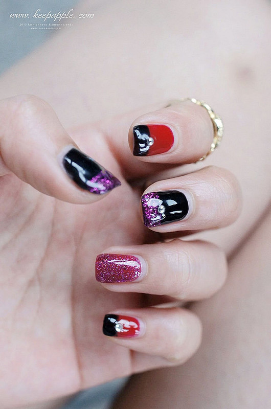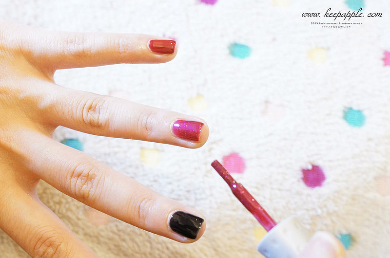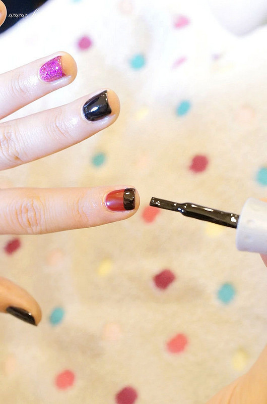 紅色指頭(櫻桃朵朵)上頭疊上黑色(勇敢的起點)