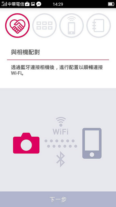 透過相機內置的Wi-Fi + Bluetooth 連接手機後