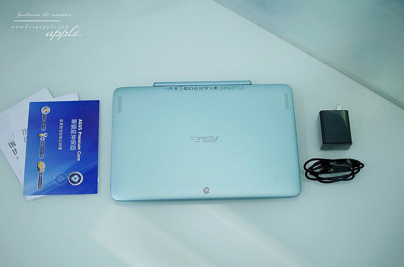 而打開盒子有T100HA平板電腦、可拆卸鍵盤