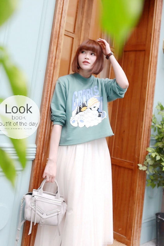 這套我搭配了卡通圖案的衛衣