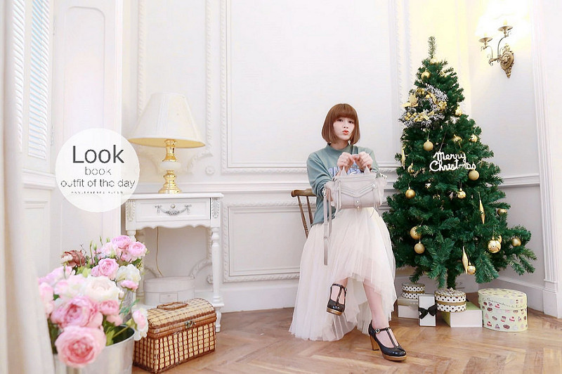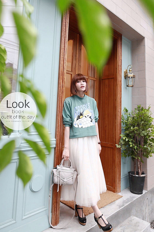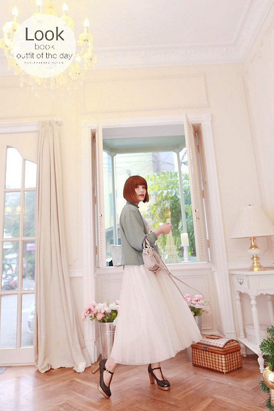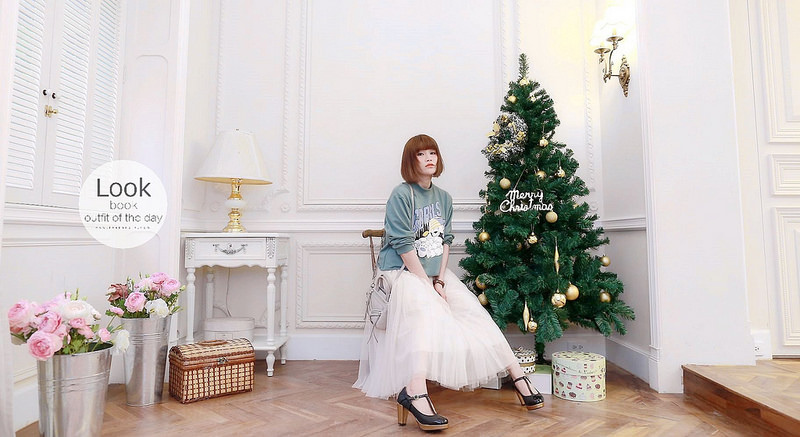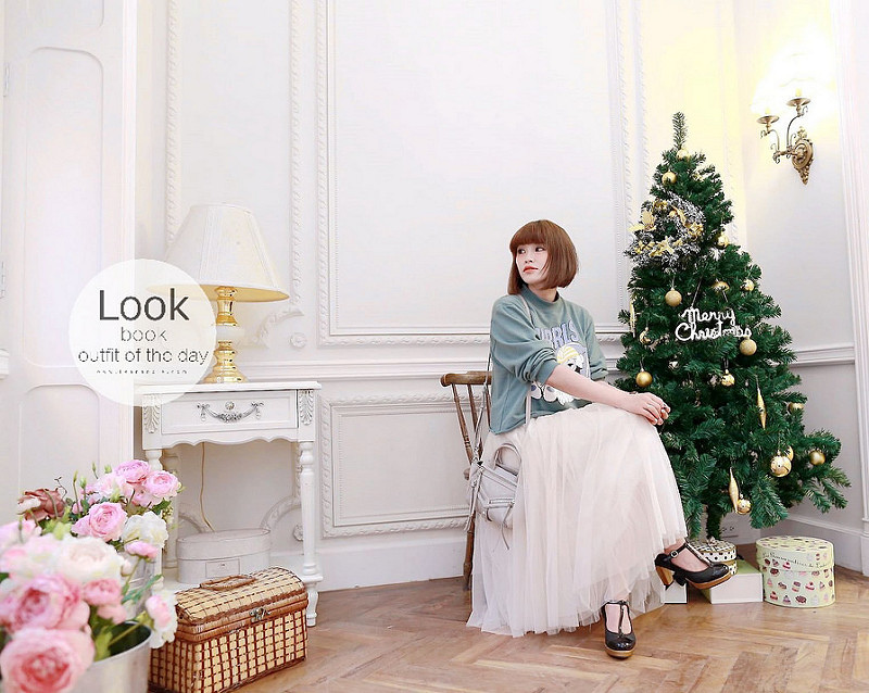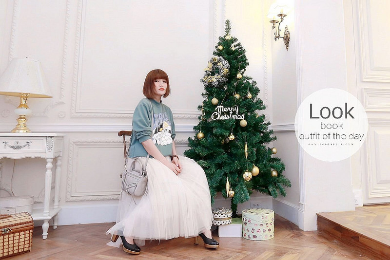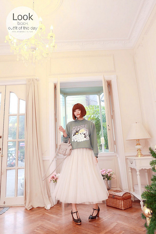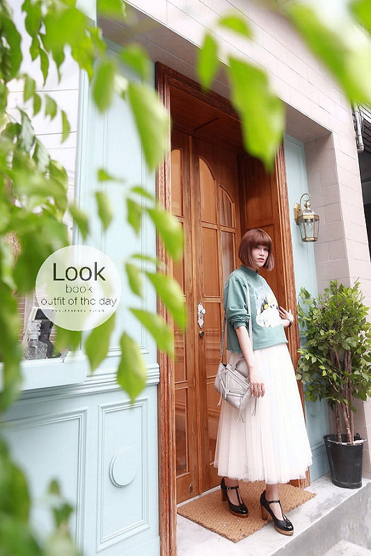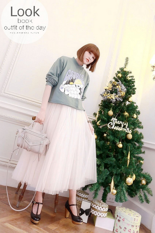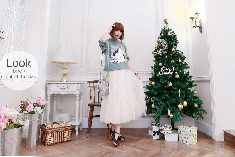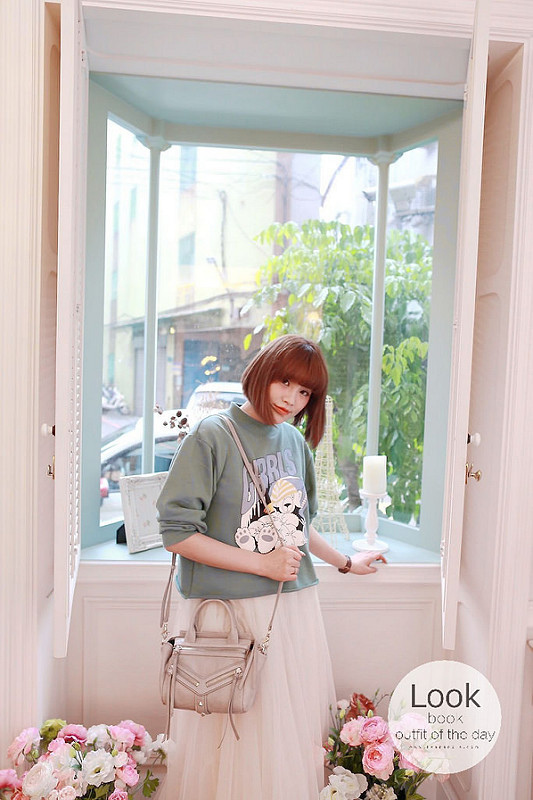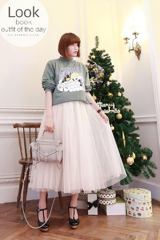 然後下半身搭了分量挺足夠的紗裙