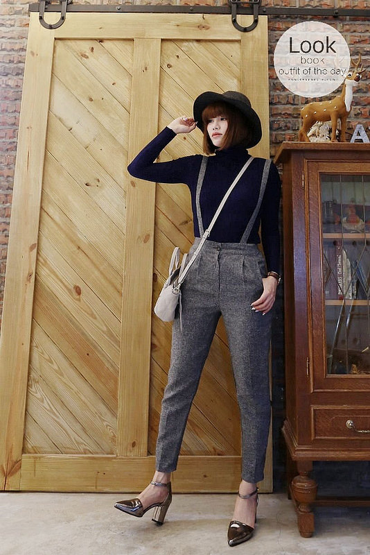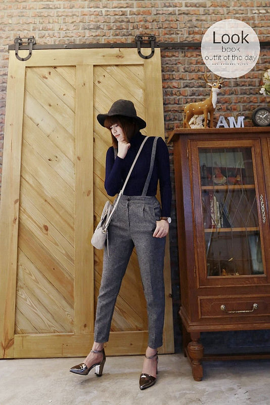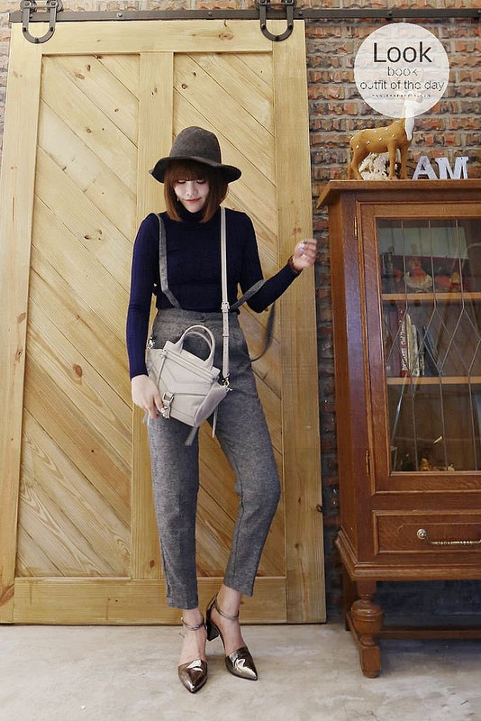 終於又被我翻出去年的高領衫跟吊帶褲來搭配