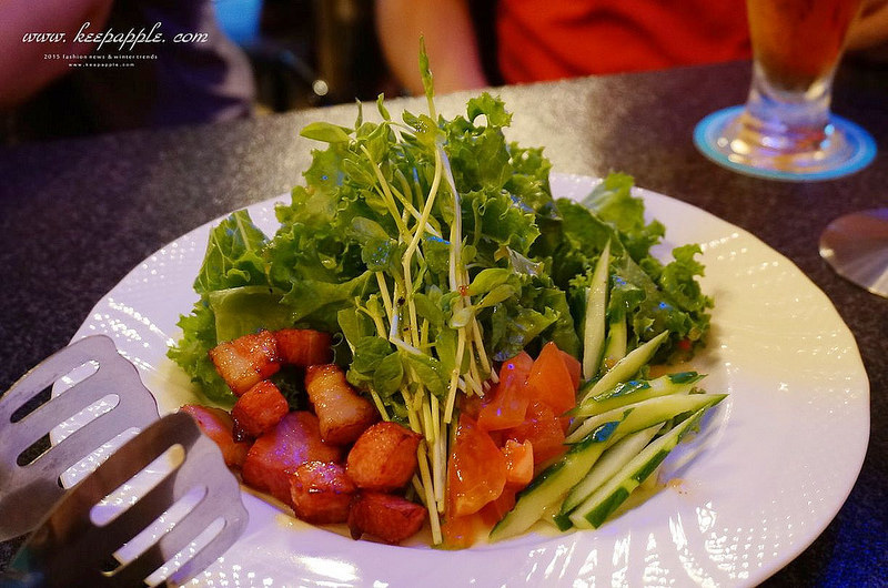 四個人還點了厚培根生菜沙拉、炸雞翅、
