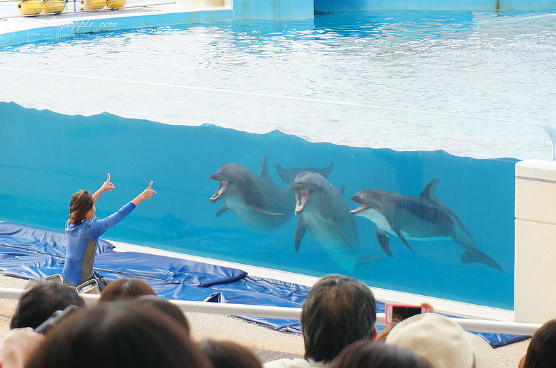 每日表演的的鯨鯊餵食秀、海豚表演秀。