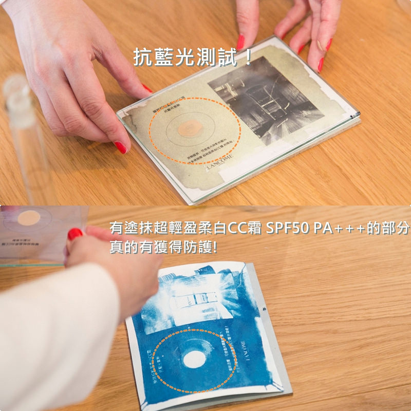 CC霜的部分在隔離藍光的部分