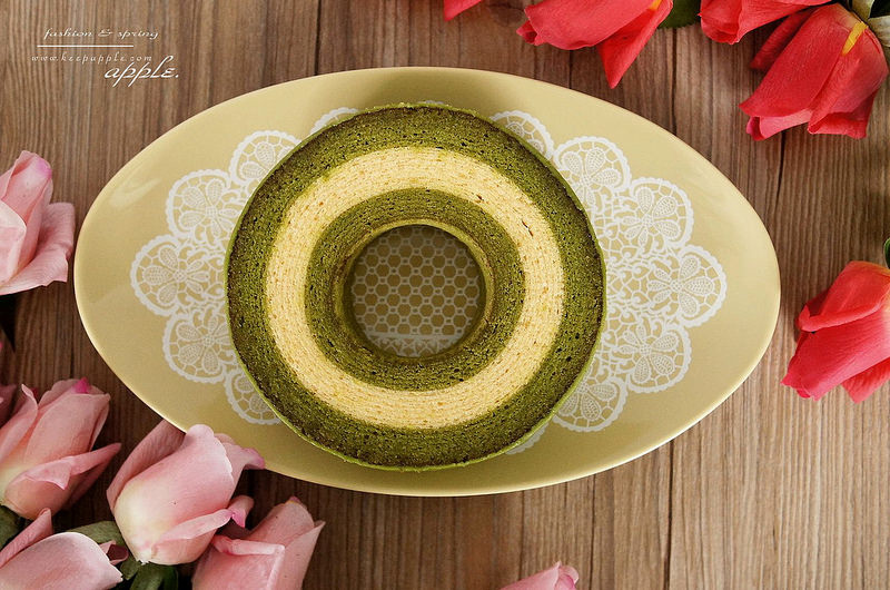 最外層是抹茶糖霜,配上抹茶蛋糕&中間的豆漿層蛋糕