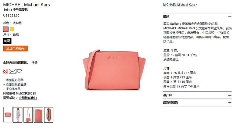 款式售價一般為台灣專櫃單品的七折起售,消費滿100美金還可享免運費