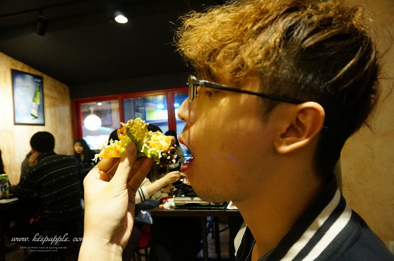 而且包在生菜裡頭感覺烤腸更清爽了,