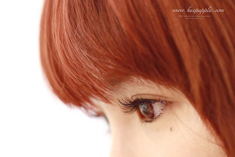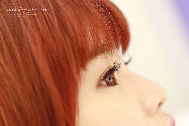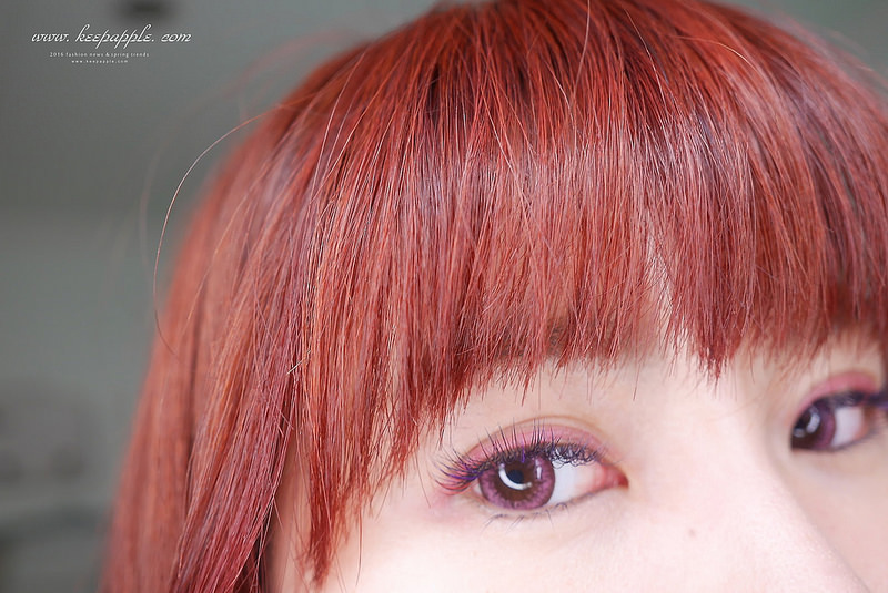 在原本的睫毛中穿插幾根紅色跟紫色的睫毛