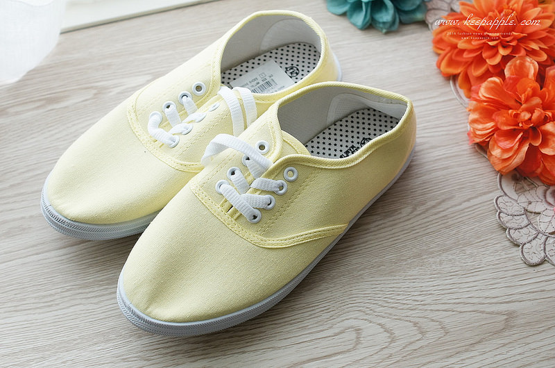 這雙是一雙不到一百元台幣的黃色球鞋!