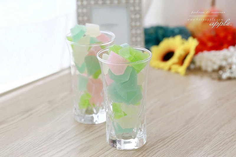 藍色(胡椒薄荷)、紅(桃子)、白(可爾必思)、綠(哈密瓜)。