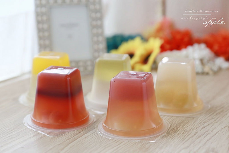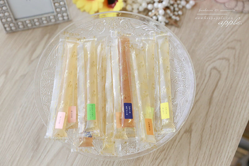 共有「牛奶凍&青蘋果」、「桃&紅桃」、「木瓜&覆盆子」、