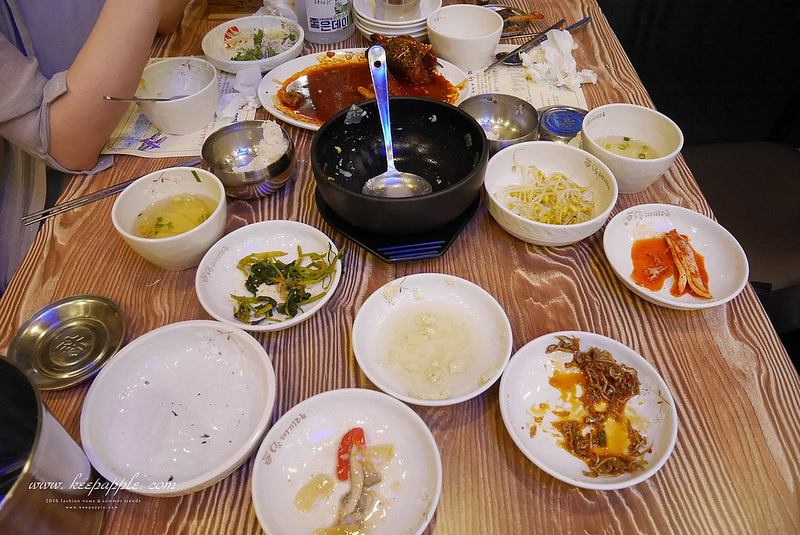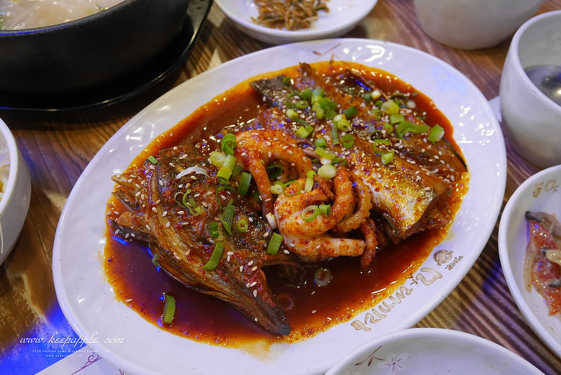 點了辣燉明太魚乾加章魚和明太魚乾湯,