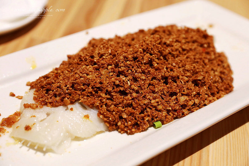 甜滑入口的整塊鱈魚頂部灑上大量的豆酥