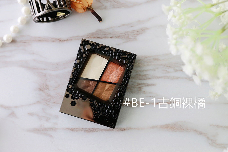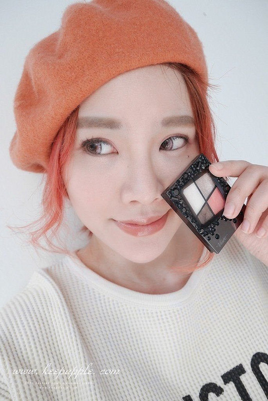 B(右上)則是亮度最高的珍珠亮粉,可以說是這系列眼影盤的重頭戲,閃爍透明感的光澤