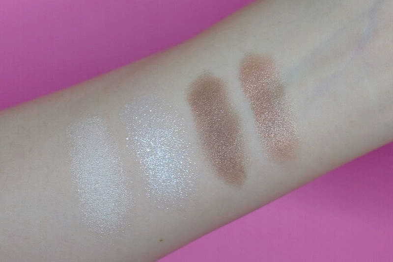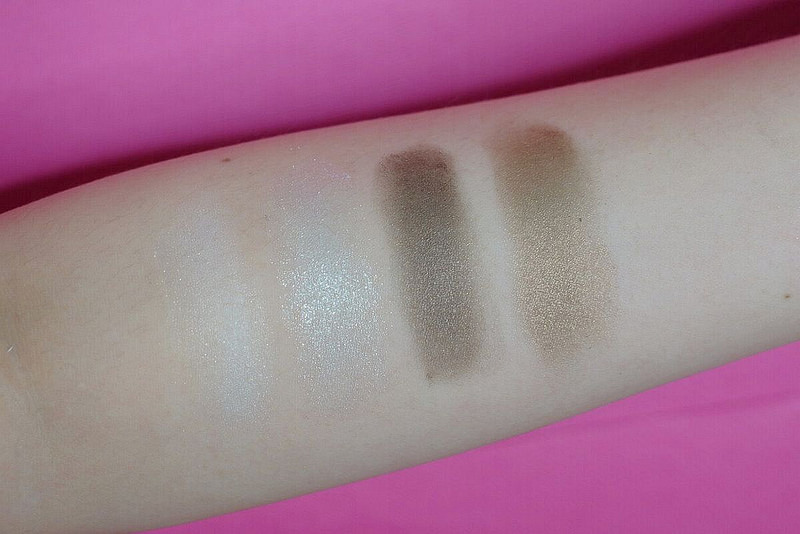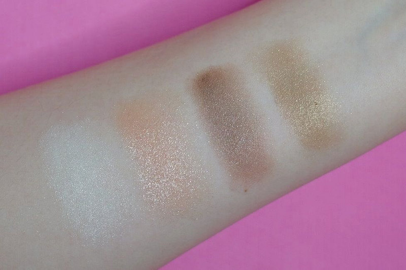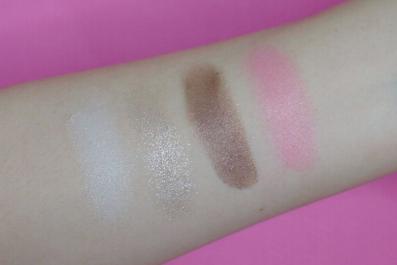 柔和透白、鮭魚粉紅、深咖啡,粉膚亮片的組合