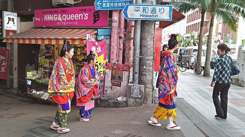 逛一逛還遇到穿琉球傳統服飾的女孩