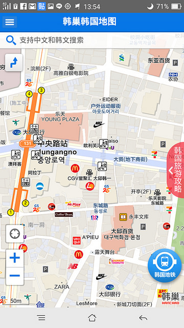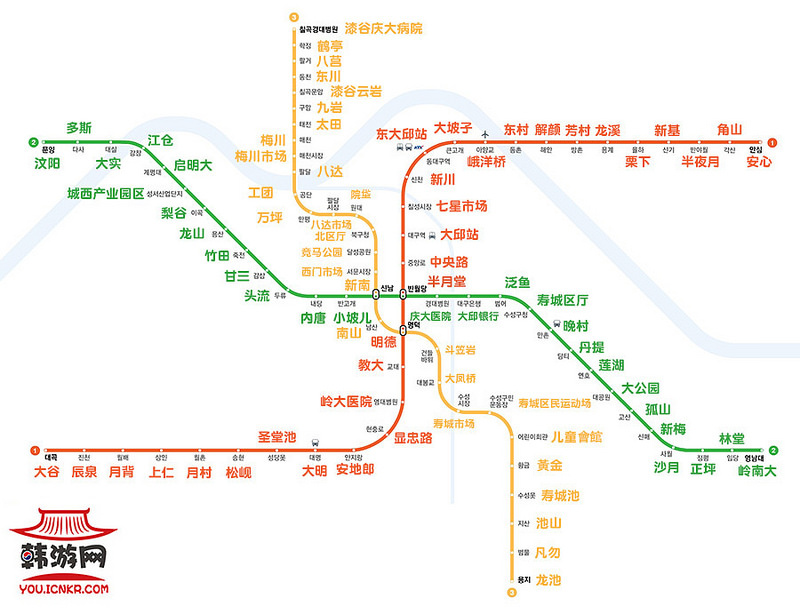 大邱最新開通的3號線,和地鐵不同、是高架的捷運系統