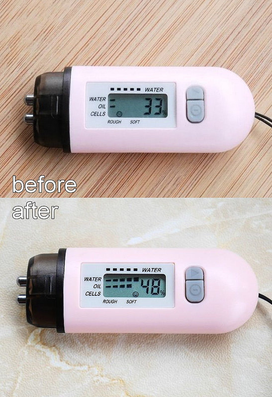 難得拿出美容儀器來測試了一下保濕度