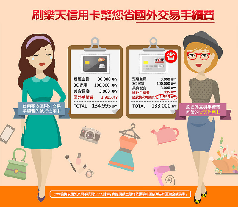 這時就算免稅也是硬生生的少了1.3-1.5%的優惠,但只要用樂天信用卡