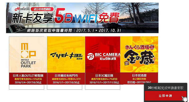 3. 新卡友完成首刷+商店請款後,可享日本5日赫倈森WiFi免費序號,無流量限制機種