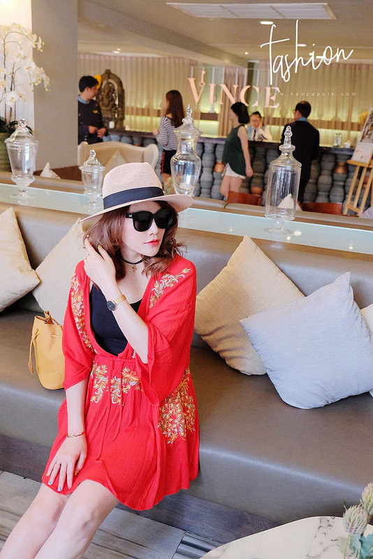 民俗風的洋裝配上有特色的墨鏡剛剛好
