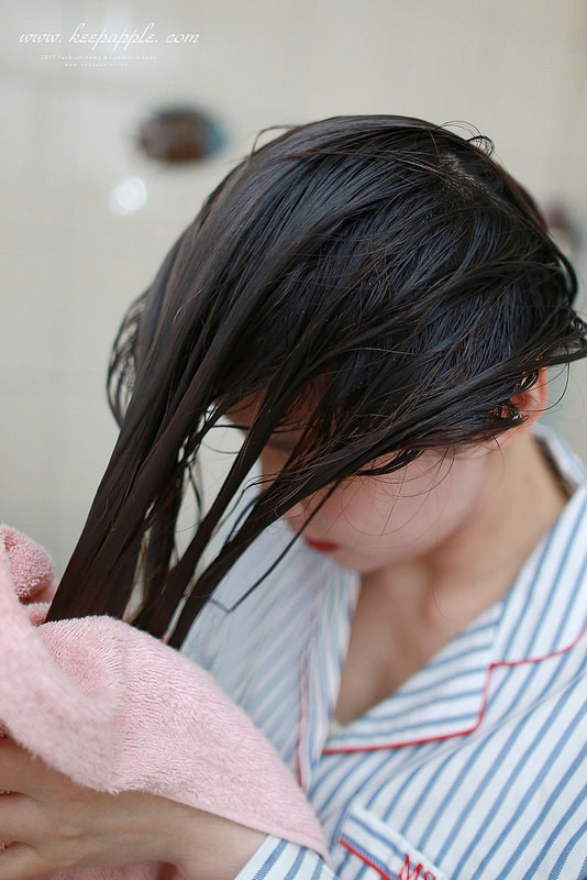 我特別沒有用潤絲跟護髮品就吹頭髮