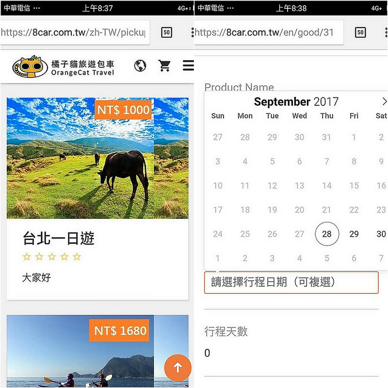 這次體驗了經濟部商業司及資策會服創所輔導的橘子貓包車旅遊平台