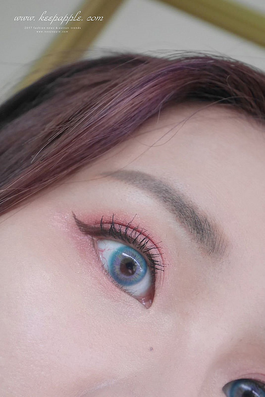 粉紅色系暈染的眼妝加上睫毛膏和眼線