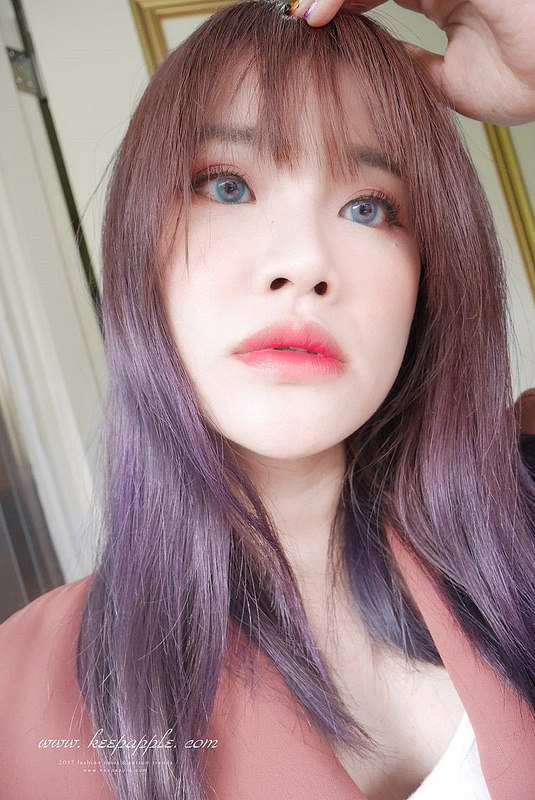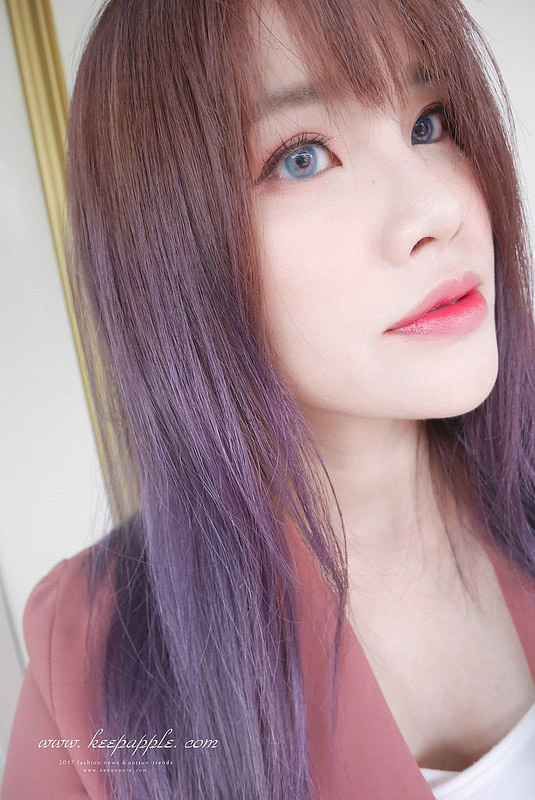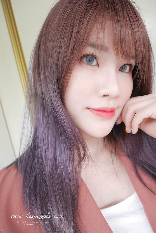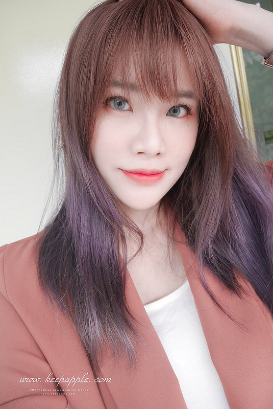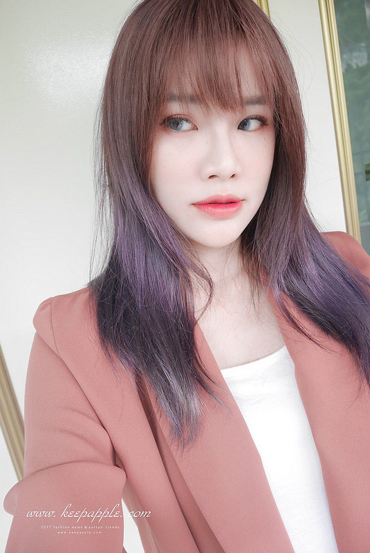 跟新染的灰紫髮色搭配在一起也是滿match