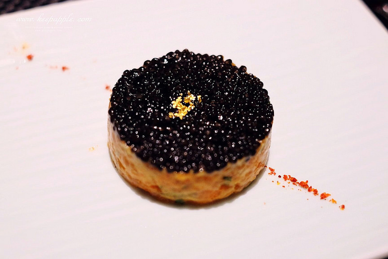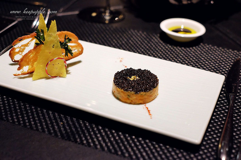 Apple 的前菜「生食鮭魚韃靼與經典魚子醬」